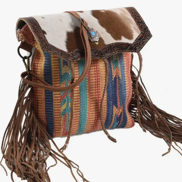 American Darling Fringe Crossbody Cowhide & Upcycled Canvas