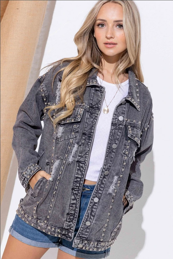 And The Why Womens Studded Flap Drop Shoulder Jacket