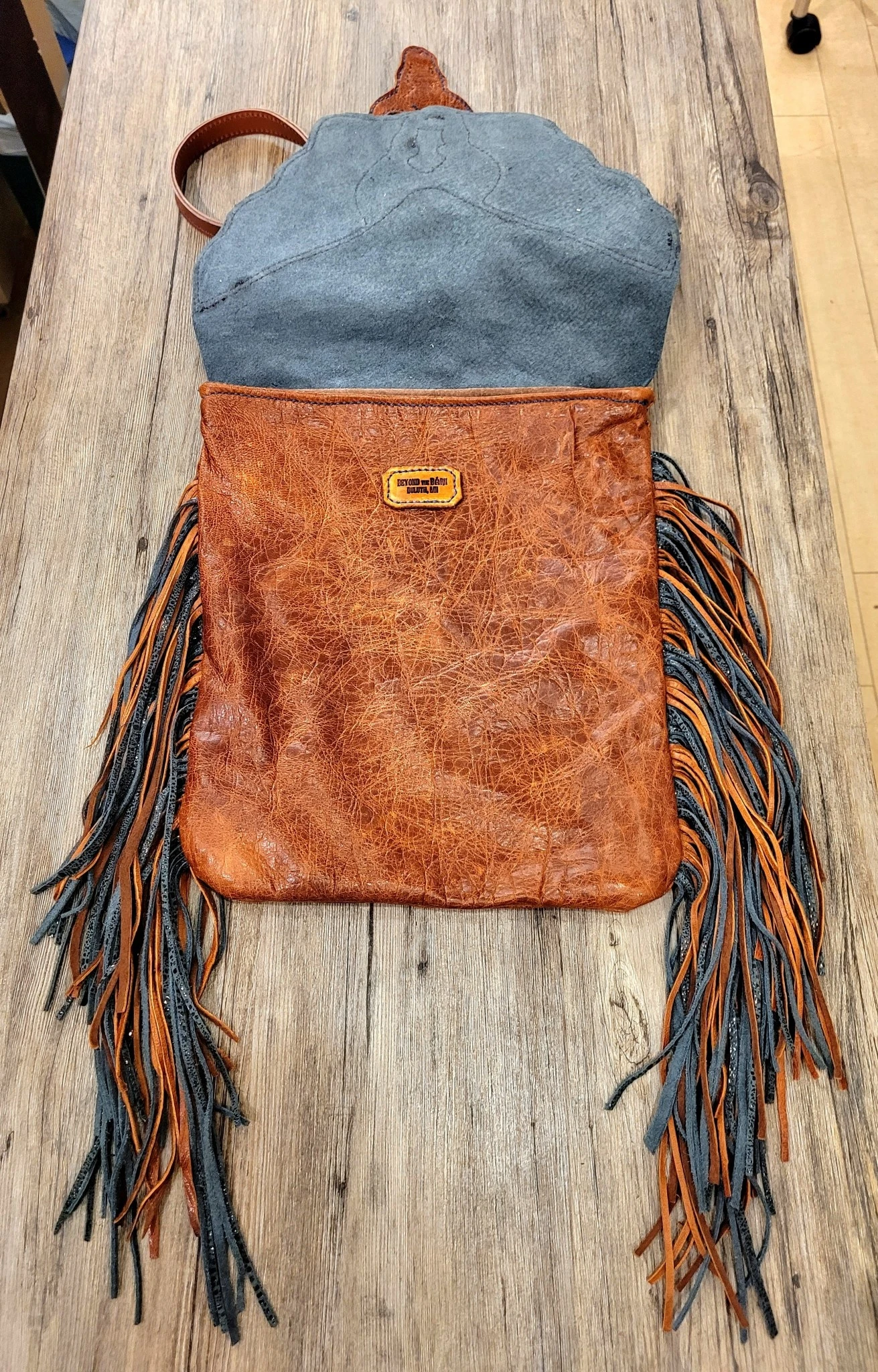 Beyond The Barn Speckled Navy Russet Brown Leather Bull Skull Purse BTB