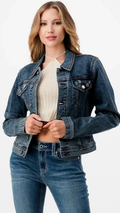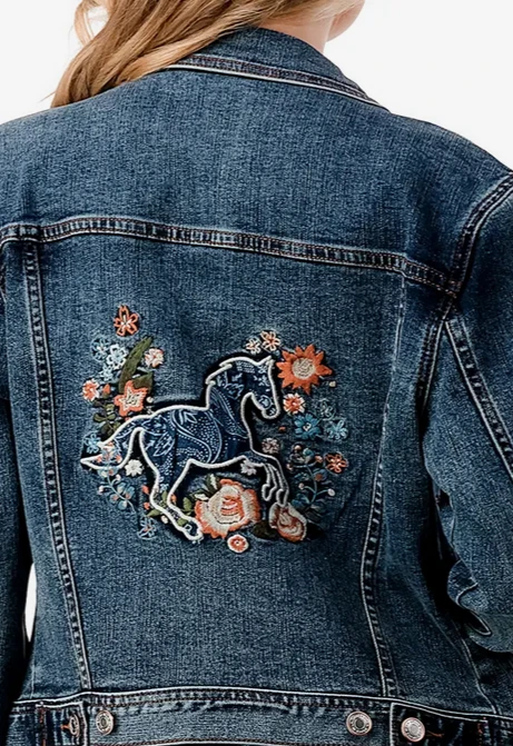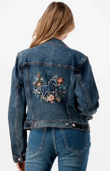 Grace In LA Embroidered Floral Horse Denim Jacket