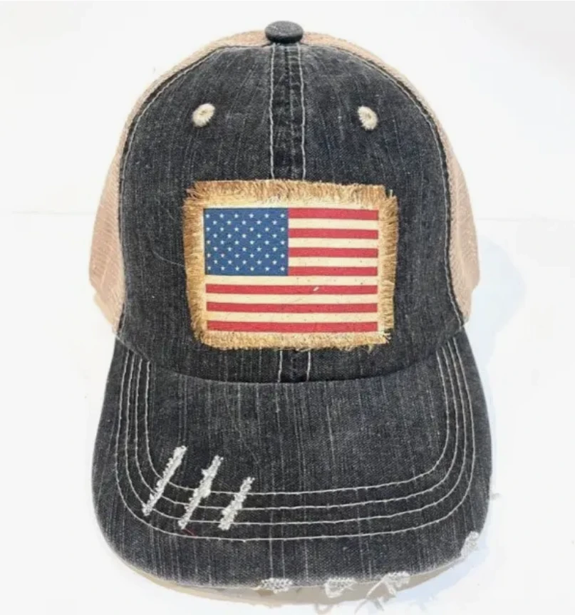Jana’s Flannels Distressed Trucker Hat – American Flag
