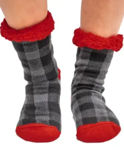 If you’re looking for heel-to-toe happiness, they are the perfect treat for your feet! These socks have a non-skid sole, a soft, fleecy outside, and a luxurious sherpa interior for ultimate warmth and comfort.