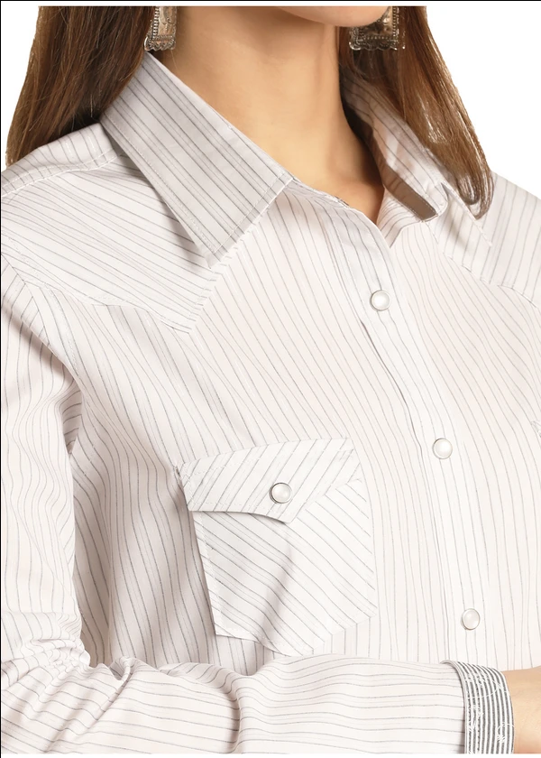 Panhandle Slim Ladies Grey Striped LS Snap