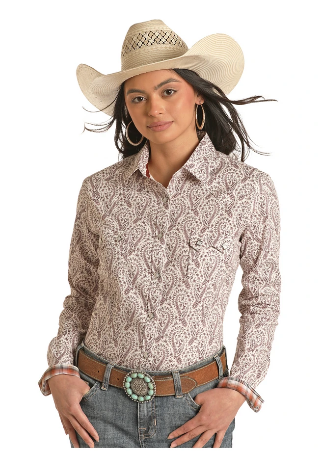 Panhandle Slim Womens LS Snap Cream/Brown Paisley