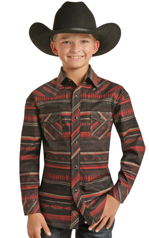 Rock & Roll Denim Boys Aztec Stripe Poplin Print Shirt