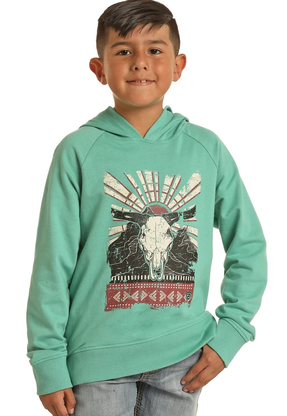 Rock & Roll Denim Boys LS Hoodie Turquoise Graphic