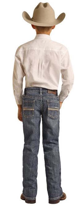 Rock & Roll Denim Boys Straight Jeans Ivory/Leather Pocket