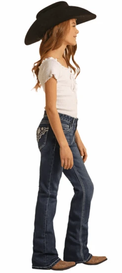 Rock & Roll Denim Girls Jeans Blue/Ivory Aztec Pocket