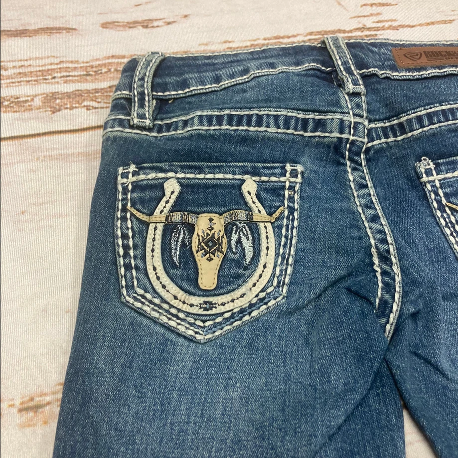 Rock & Roll Denim Girls Jeans Longhorn Embroidered Pocket