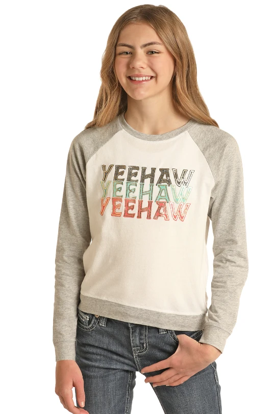 Rock & Roll Denim Girls LS Pullover YeeHaw