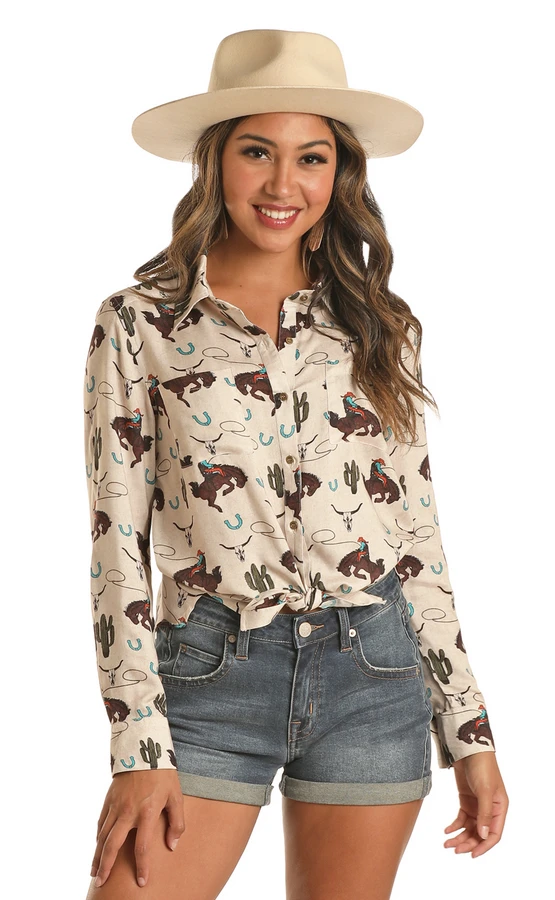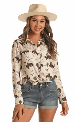Rock & Roll Denim Juniors Button Shirt Cactus/Bronc