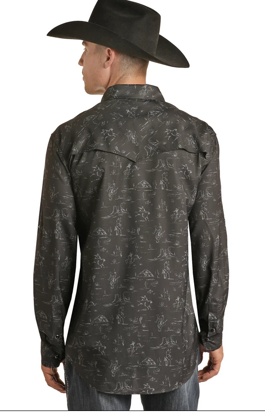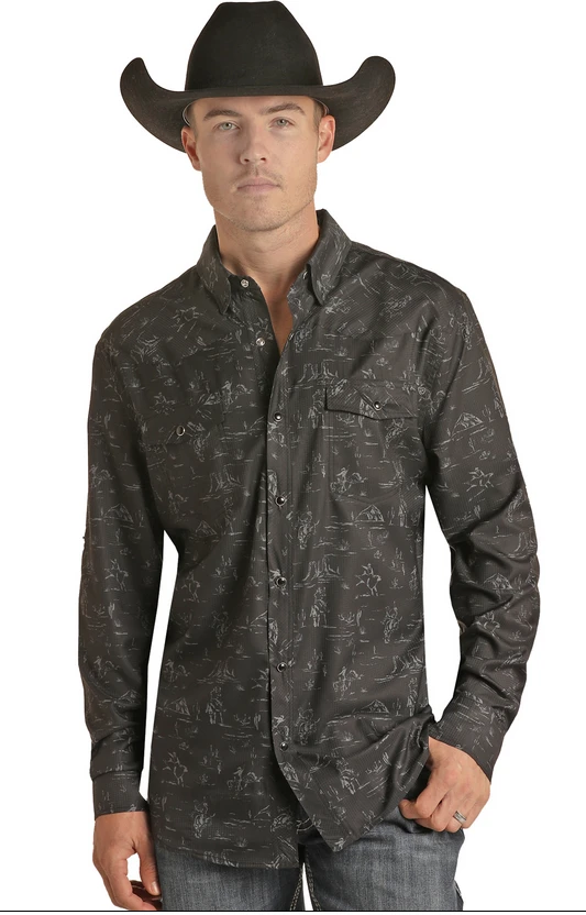 Rock & Roll Denim Mens LS Tech Western Shirt Black