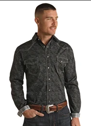 Rock & Roll Denim Mens Vintage Paisley Western Shirt Black