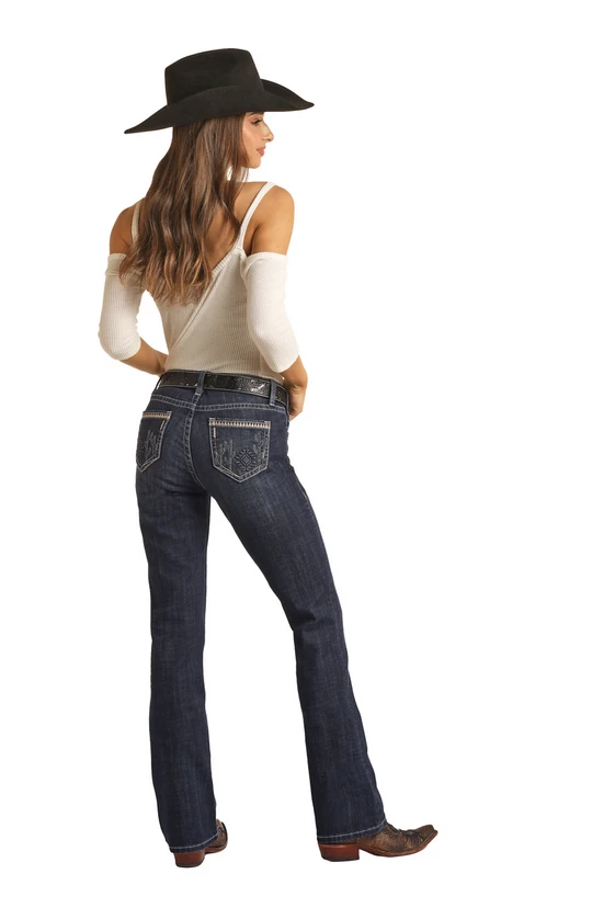 Rock & Roll Denim Womens Midrise Jeans Raised Cactus Pocket