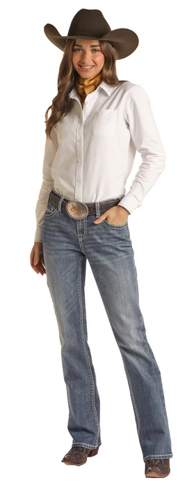 Rock & Roll Denim Womens Riding Jeans Ivory/Khaki Pocket