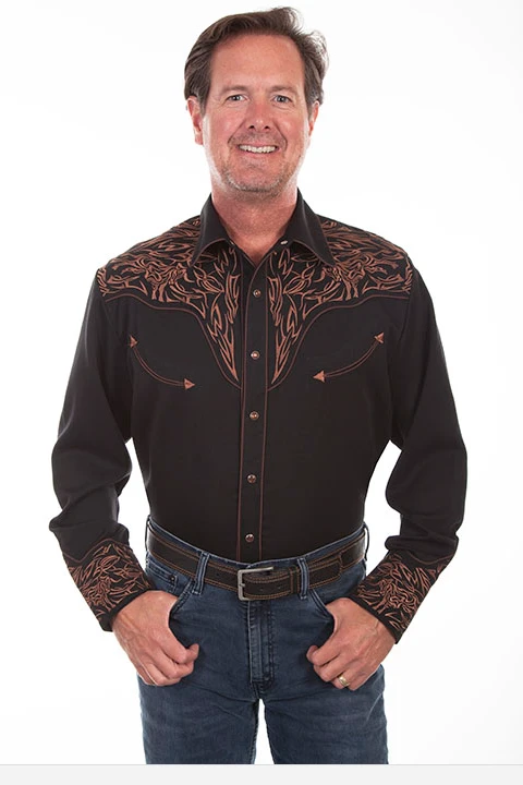Scully Legends Tribull Embroidered Shirt – Black/Copper